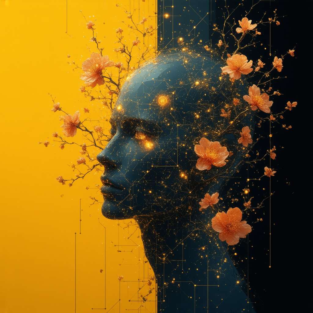 Prompt: Un’immagine iconica in stile naturalista e impressionista, con una palette di colori caldi e desaturati. Al centro della composizione visiva risalta una simbolica interpretazione di un chip in silicio, che incarna il concetto stesso di intelligenza artificiale. Quest’elemento è avvolto dai rami in fiore tipici degli alberi di ciliegio, i quali rimandano alla realtà della startup cinese DeepSeek. Con movimento ascendente, i rami raggiungono infine una versione stilizzata del logo di Hugging Face, rimarcando così l’aspetto open source presente nel modello stesso. A far da cornice c’è uno sfondo caratterizzato da un cielo coperto e tracciato tramite pennellate dal sapore impressionista, evocante sensazioni forti legate al dinamismo e ai mutamenti in atto.