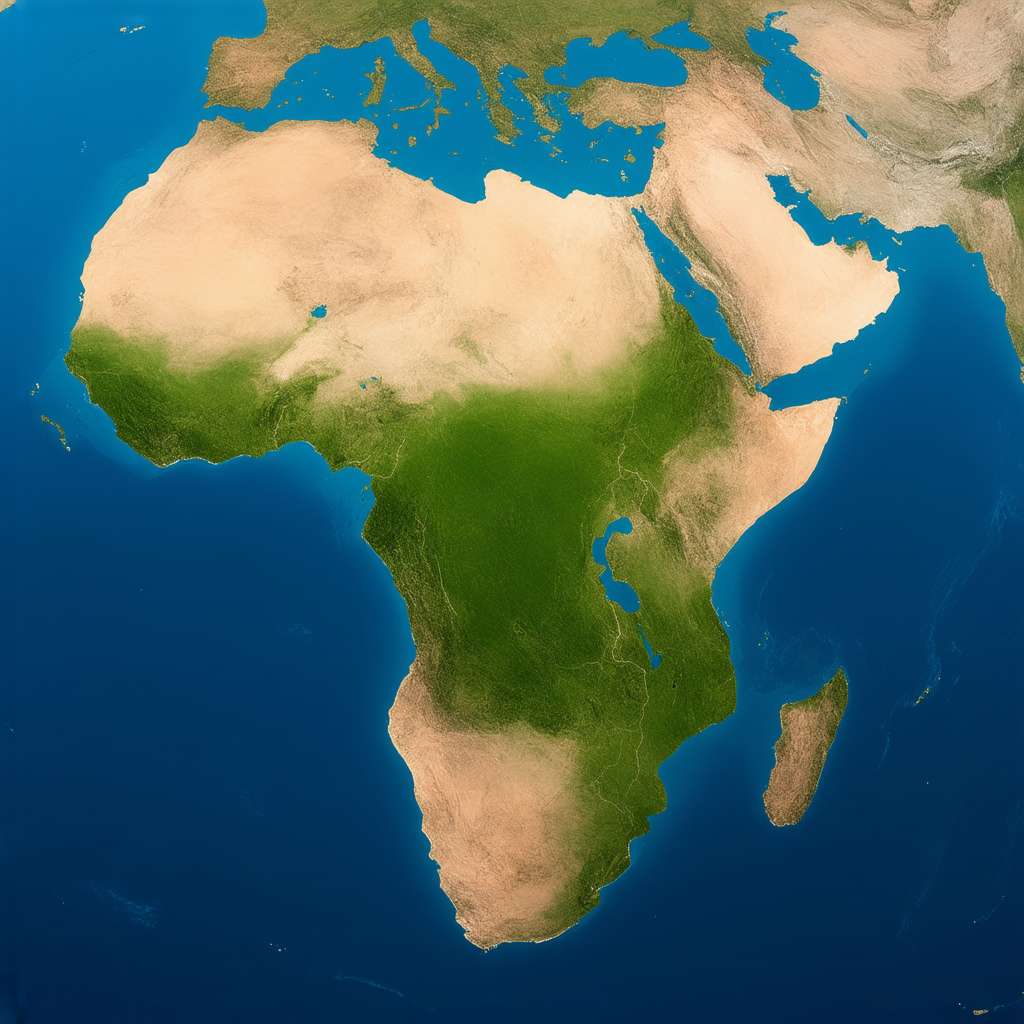 3. The Job Market (Metaphorical Landscape): Illustrate the job market as a landscape, partly flourishing with vibrant, innovative sectors (representing opportunities created by AI) and partly barren and desolate (representing jobs lost to automation). The landscape should blend seamlessly with the AI figure, showing its integral role in shaping the future of work.
